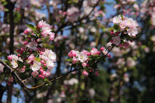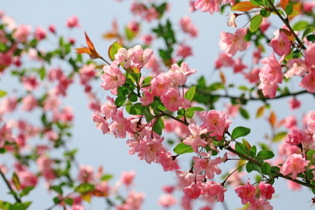 海棠花进行必要的修剪可以抑制枝叶生长得过于繁茂而影响花芽的生长。在花期之前的时候进行适当的修剪,可以让更多的养分促进花芽的分化。同时修剪的时候可以将一些残枝病叶一并清除,让更多的养分留下来,对于长花也是非常有利的。当然,修剪还有一个好处是让植株更加的具有良好的观赏性。