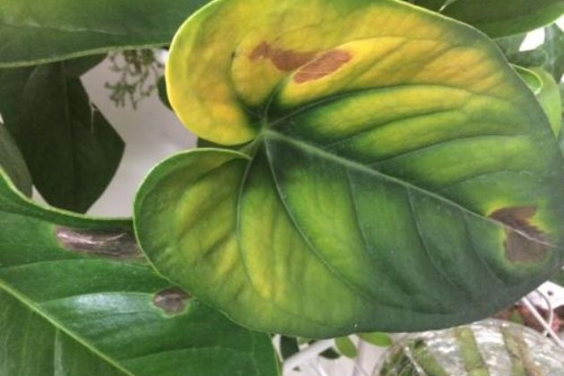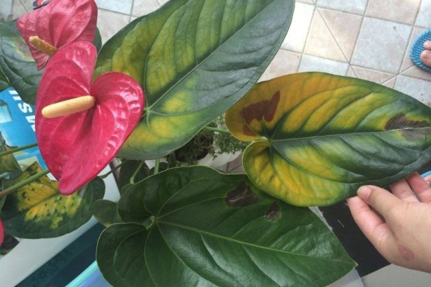 惠山红掌叶子发黄焦边干枯是怎么回事?